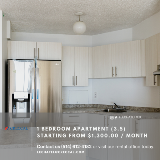 ***PROMOTIONS AVAILABLE*** With views overlooking the beautiful skyline of downtown Montreal, Le Chatel will make you find the tranquility that fits perfectly with the thrill of an urban lifestyle. In the heart of the creative city of Montreal, Le Chatel is an established apartment building where our residents can enjoy the proximity of restaurants, stores, universities and much more.The establishment is also located at just a few seconds from the metro station Guy Concordia and several bus lines making your everyday transportation easier. Le Chatel has 24/7 doorman services with fob card and intercom systems making your safety our priority.A full-sized indoor swimming pool and an in-house laundry facility is conveniently located in the building. Our one-bedroom apartments come equipped with plenty of living and storage space. All utilities and amenities included in the rent except for cable, telephone, internet, and parking.--------------------------------------------------------***PROMOTIONS EN COURS***Tout au centre de la brillante ville de Montréal, Le Chatel est une résidence d'appartements ou nos habitants peuvent profiter de la proximité; des restaurants, magasins, universités et bien plus encore. Le Chatel est situé à quelques secondes de la station de métro Guy Concordia ainsi que plusieurs lignes de bus facilitant vos déplacements de tous les jours.Avec un système de cartes d'accès et d'intercom, Le Chatel garde comme priorité; la sécurité; de ses résidents avec des mesures mises en place 24h/24 et 7j/7. A l'intérieur de l'immeuble se trouve une piscine intérieur chauffée ainsi qu'une buanderie.