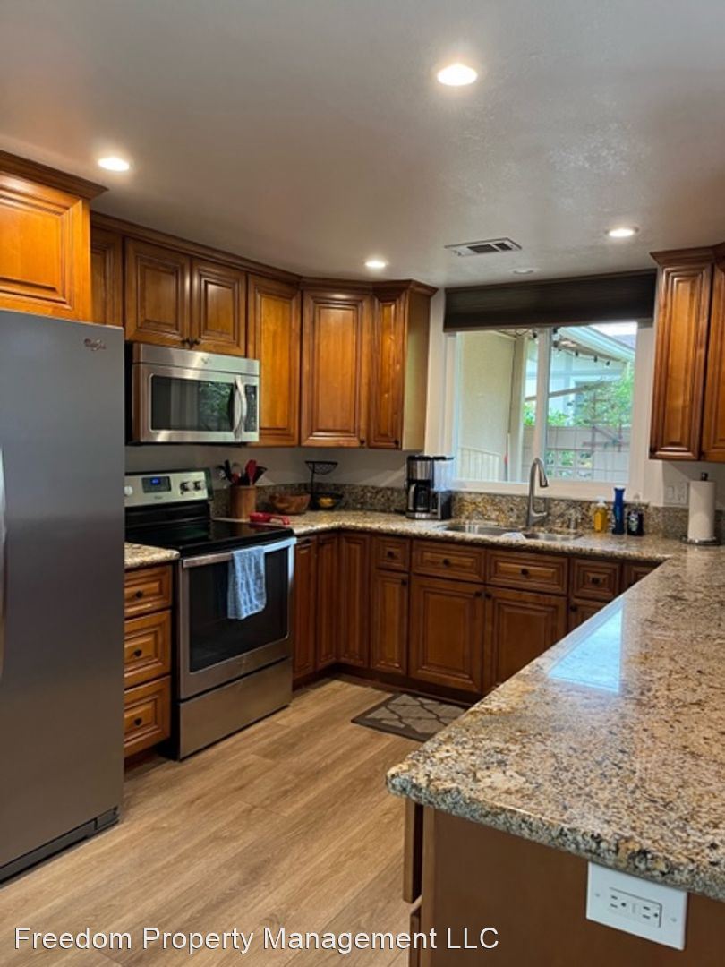 Furnished 2 bedroom 2 bath 55+ Community - Available Sept 1st thru Jan or Feb or March 2024 Beautiful, completely remodeled one-story building NO steps, 2BD, 2BA END UNIT. Gorgeous double-door entry. Vaulted ceiling and crown molding in the living room. Rich wood-like flooring. Kitchen with granite counters and stainless appliances. Central heat and air. Washer /Dryer. Patio plus private inner atrium that provides bright natural sunlight into rooms. Nearby carport. Laguna Woods Village is a gated 55+ adult community, ideally located just short drive 7 miles to Laguna Beach. Amenities include: 27 hole championship Golf Course, tennis, 5 pools & Spas, fitness centers , equestrian center, wood shop, 7 clubhouses.